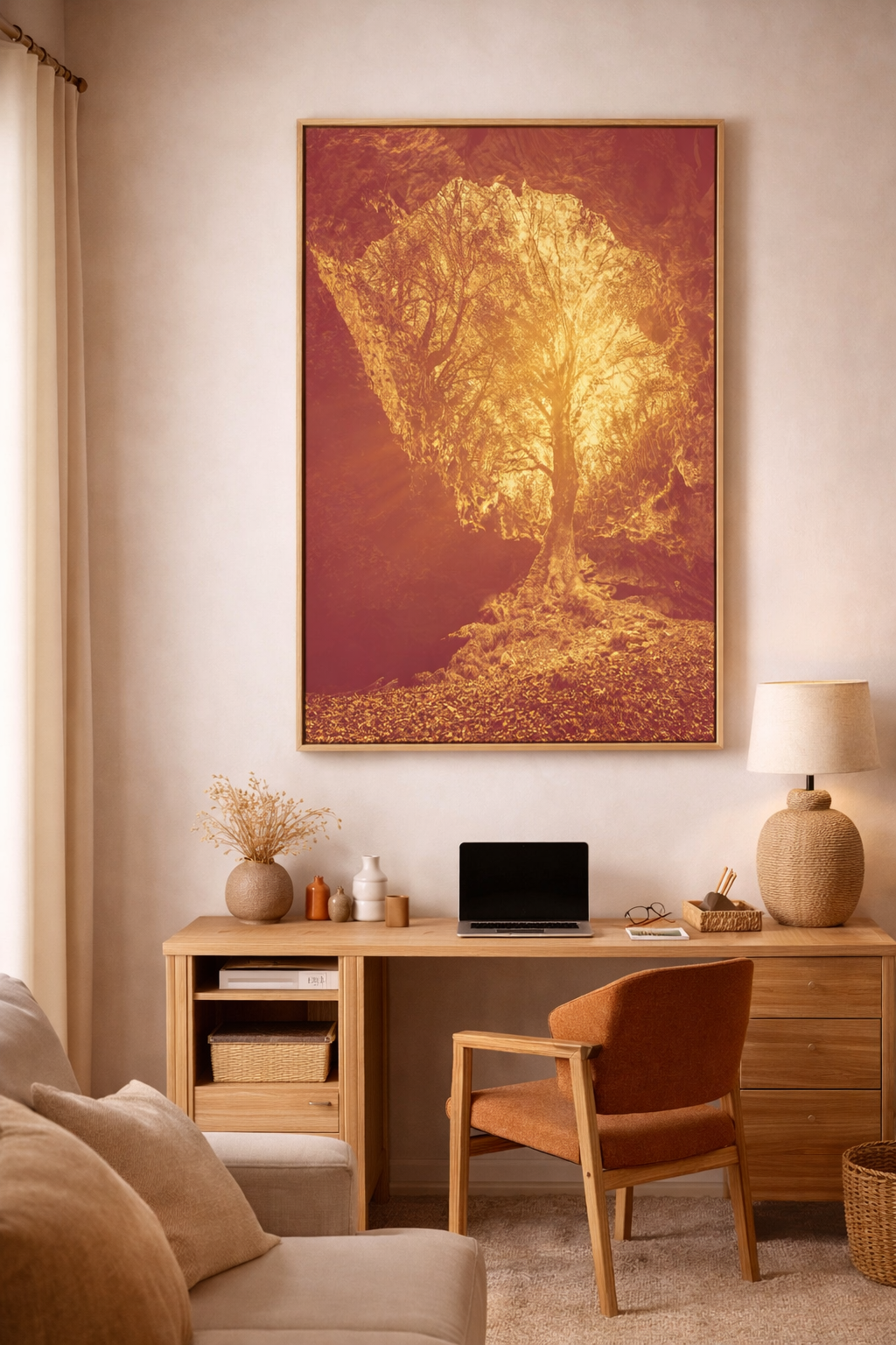 In the quiet of dawn, where mist clings to the earth like a whispered secret, the morning sun breaks through, spilling gold across the horizon. The mist, soft and ethereal, holds the light tenderly, turning the air into a shimmering veil of gold. Each dewdrop glows like a hidden jewel, and the world, still half-dreaming, awakens beneath this delicate light. There’s a magic here—where the sun meets the mist—transforming the ordinary into something rare, as if the morning itself is spun from threads of gold, woven into the fabric of time.